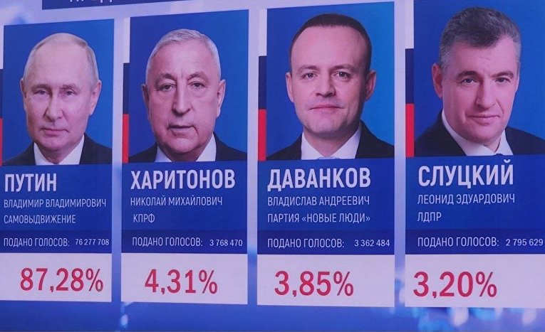 Кандидаты Владислав Даванков от партии «Новые люди» набрал 3,85% голосов, Леонид Слуцкий от ЛДПР — 3,2%, за представителя КПРФ Николая Харитонова избиратели отдали 4,31% голосов.